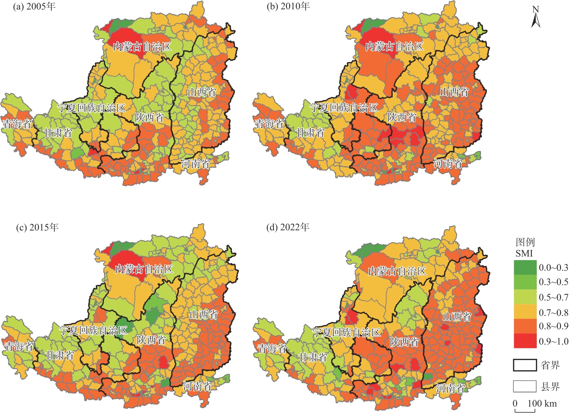 植被恢复是生态恢复的前提,系统分析退耕还林强度与植被恢复的空间错配关系是科学制定生态保护与修复政策的基础。借助植被恢复潜力实现度和退耕还林强度的相对差异,分析了黄土高原植被恢复空间错配格局的时空变化特征,并运用地理加权回归对植被恢复空间错配格局的影响因素进行了探究。结果表明:(1) 2000—2022年黄土高原植被恢复效果不断提升,2022年植被恢复潜力实现度整体在0.75以上。青海南部和山西西部植被恢复的理论最大潜力值高于0.60,但潜力实现度低于0.65,是未来植被恢复的重点区域。(2) 退耕区域内,退耕还林强度与植被恢复的空间错配指数值普遍高于0.70,表现为严重的空间不匹配,且空间错配现象正逐渐向整个区域扩散。(3) 农村人口压力和农业产业结构是加剧黄土高原退耕还林强度与植被恢复空间错配的主要因素,其对黄土高原顺利实现退耕还林政策的生态目标带来挑战。未来,黄土高原应聚焦优化农业产业结构和提高城镇建设用地的集约化程度等政策措施,缓解退耕还林强度与植被恢复的空间错配关系。