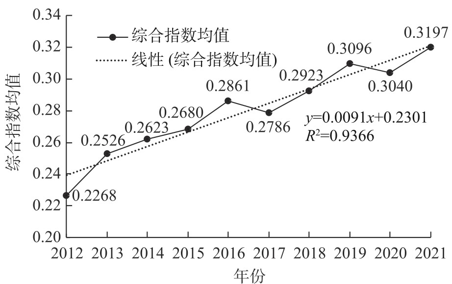 Average of each dimension index of high-quality development of urbanization by city in the Jiziwan metropolitan area of the Yellow River from 2012 to 2021"