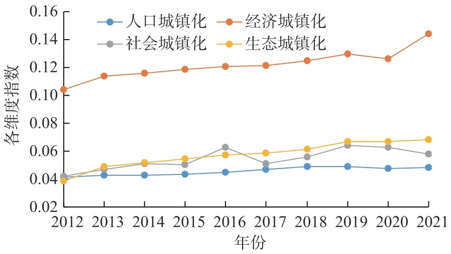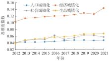 | 城市 | 人口城镇化指数 | 经济城镇化指数 | 社会城镇化指数 | 生态城镇化指数 | |||||||
