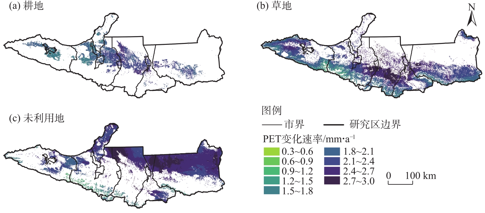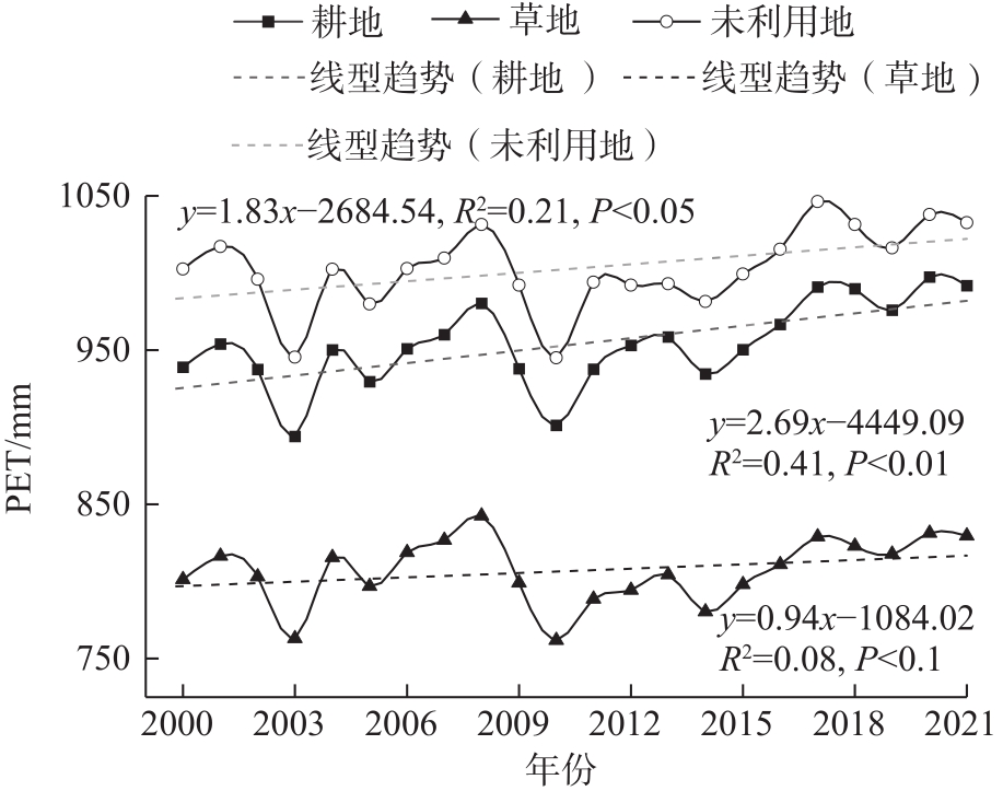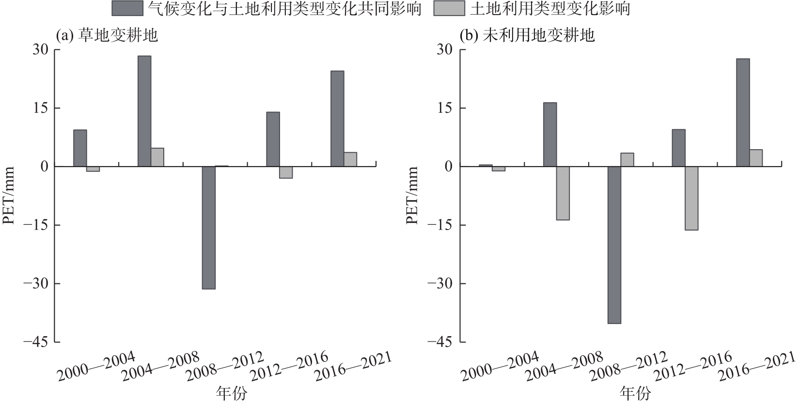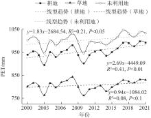 | 土地利 用类型 | 年份 | PET起始值 | PET结束值 | PET变化量 |