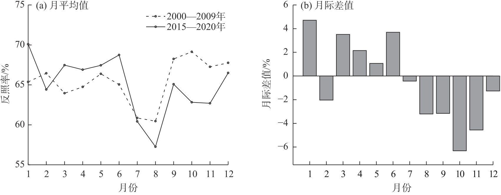Glacier albedo is a key factor influencing the rate of glacier melting and associated environmental changes. In this study, Landsat OLI images with high spatial resolution and MOD10A1 albedo products with high temporal resolution were used to analyze the spatiotemporal variations of glacier albedo and its influencing factors in the Muz Tag Peak area, Xinjiang, China from 2015 to 2020. The results show that: (1) The albedo values derived from Landsat OLI and MOD10A1 are highly consistent, with a strong correlation (R2=0.92). (2) Seasonally, the lowest albedo occurs in summer, while higher values are observed in early autumn. In winter and spring, reduced snowfall and densification of surface snow lead to decreasing albedo. (3) Spatially, glacier surface albedo increases with elevation, following an exponential relationship (R2=0.23 in the ablation area and 0.25 in the accumulation area). (4) Air temperature and precipitation are the primary factors affecting glacier albedo, as higher temperatures and reduced snowfall result in lower albedo. Topography also exerts a significant effect, with gentler slopes exhibiting lower albedo and steeper slopes showing higher albedo. This study provides a scientific basis for understanding glacier change mechanisms in the Muz Tag Peak area and for predicting future climate change.