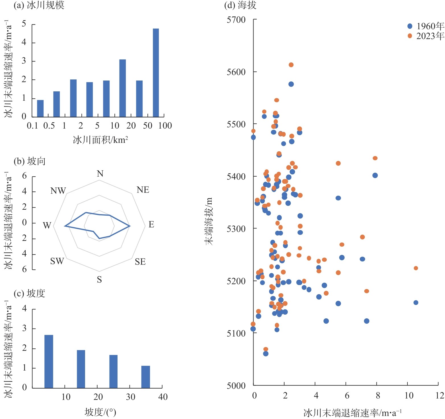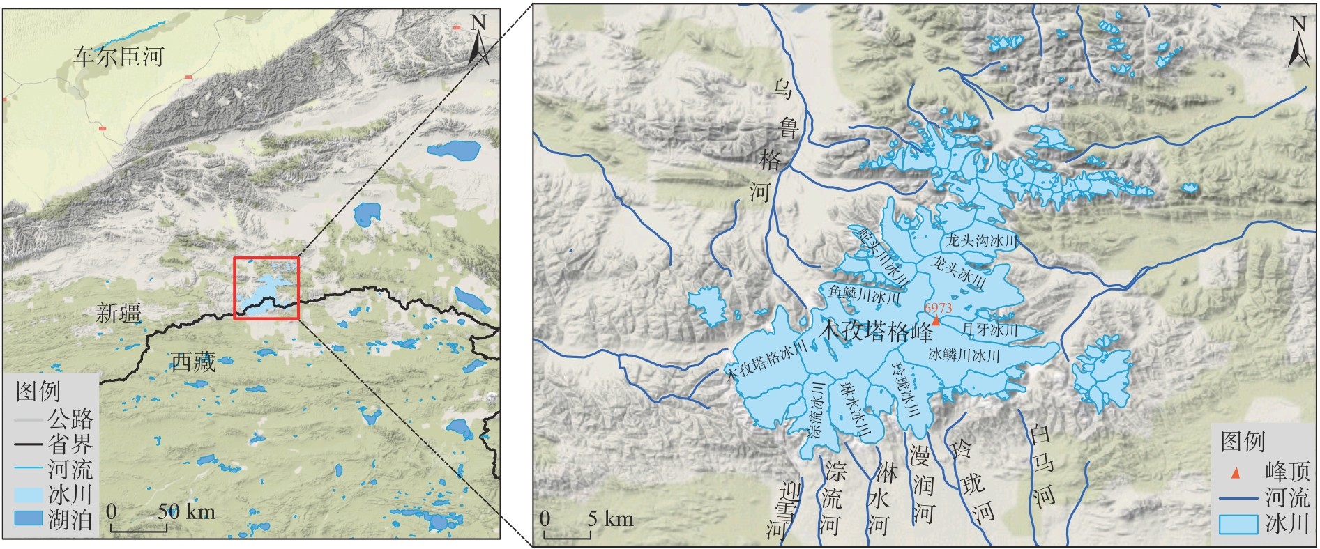 | 中昆仑山 | 木孜塔格山区 | 6973 | 5557 | 1960—2023 | 0.12 | 本研究 |