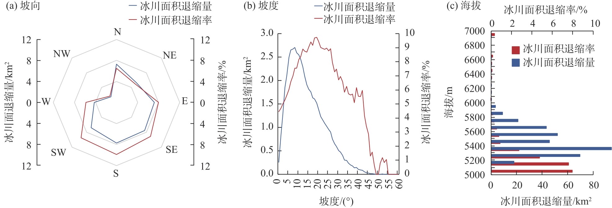 | 面积退缩量 | 0.58*** | -0.21* | 0.69*** | 0.26** | -0.27** | 0.15 | -0.02 |