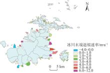 | 年份 | 面积/km2 | 变化量 /km2 | 退缩速率 /km2·a-1 | 退缩率 /% | 年均退缩 率/%·a-1 |