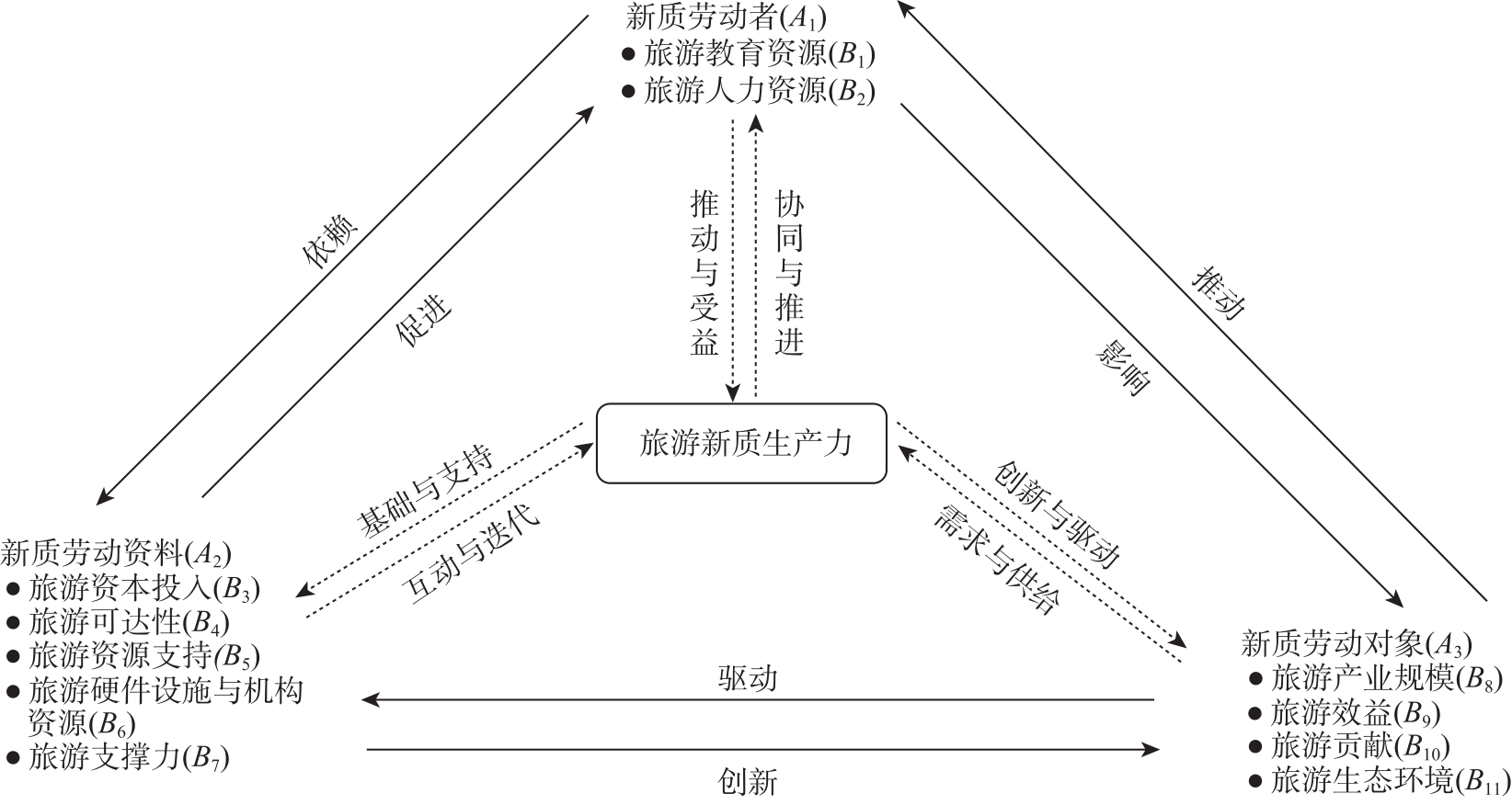 | 新质劳动资料(A2)/0.321 | 旅游资本投入(B3)/0.016 | 旅游R&D经费(X6)[ | |